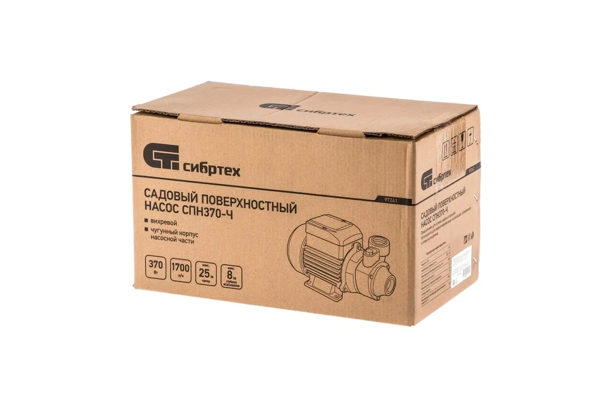 Садовый поверхностный насос СИБРТЕХ СПН370-Ч 97241 подойдет для полива садов, огородов, а также для водоснабжения жилых домов. Долгий срок использования.Корпус насоса сделан из чугуна, благодаря чему отличается долговечностью. Двигатель мощностью 370 Вт способствует подъему воды с глубины 8 метров из открытых водоемов, колодцев и прочих накопительных емкостей.