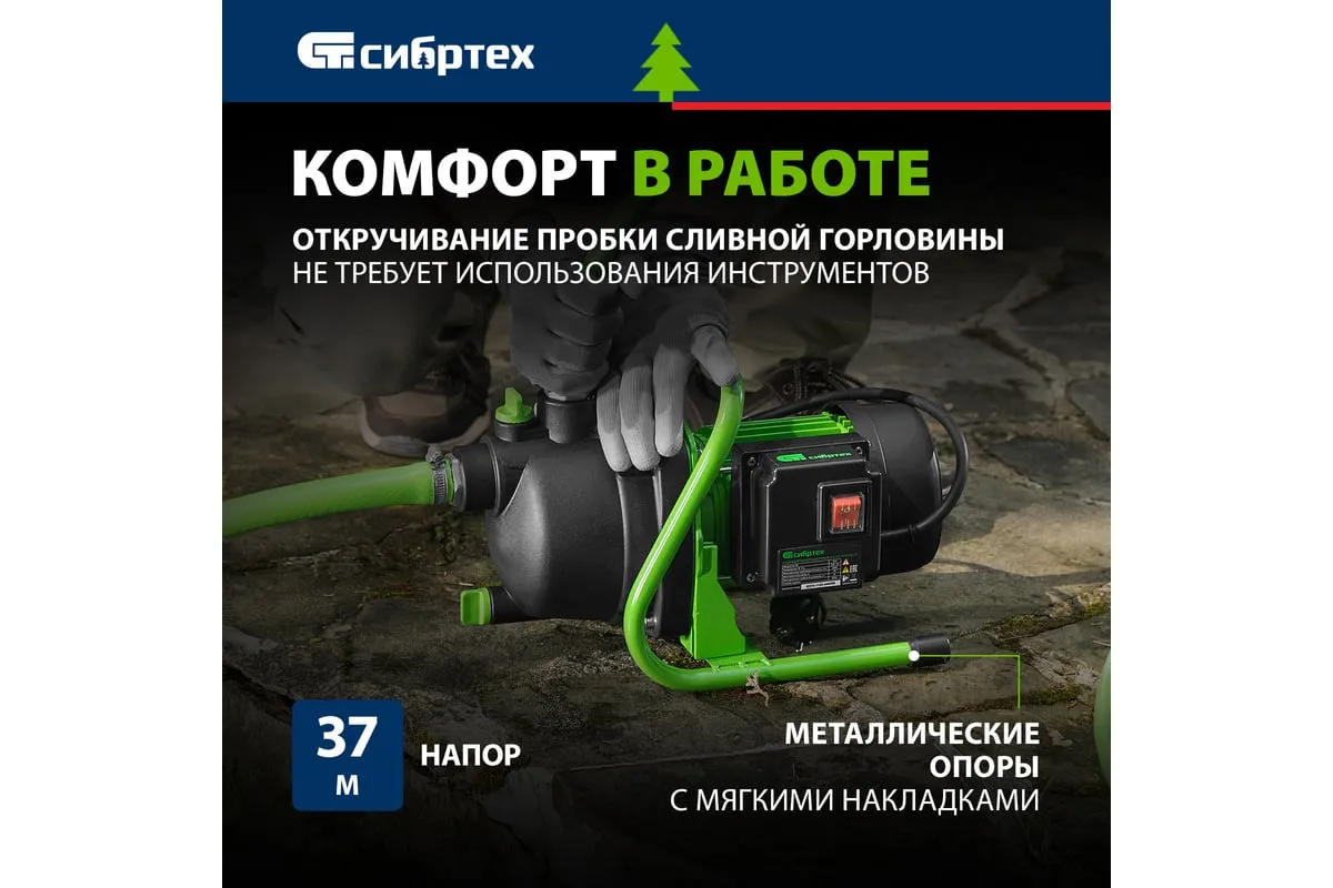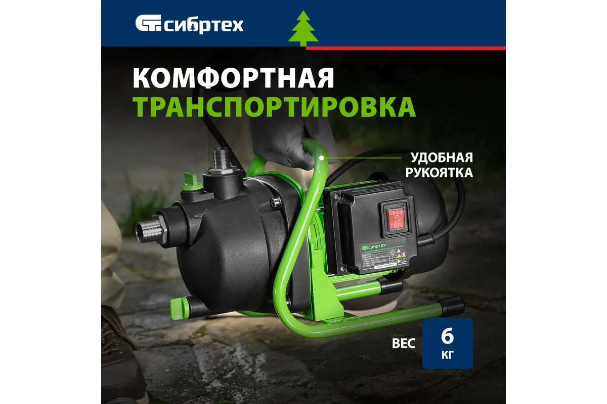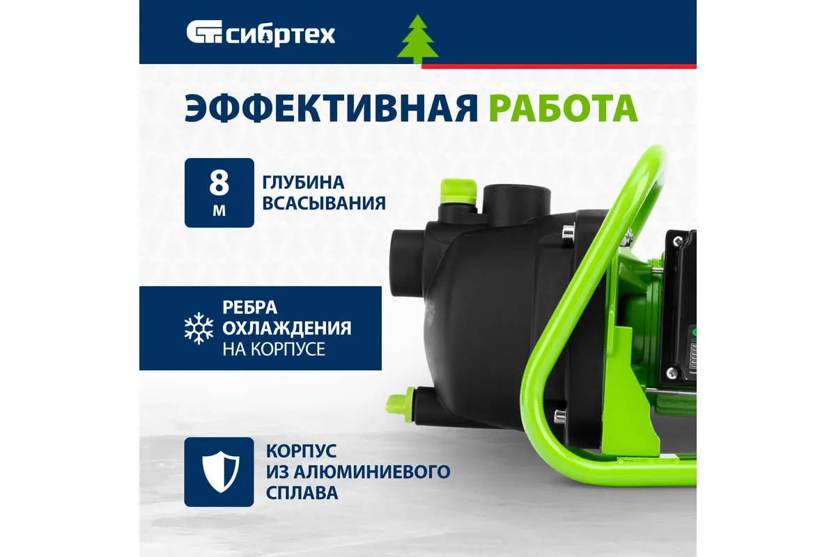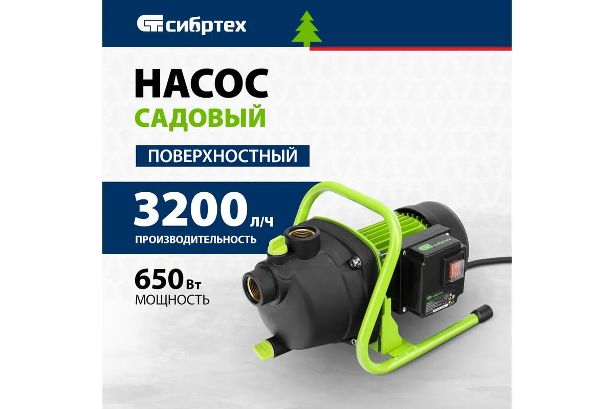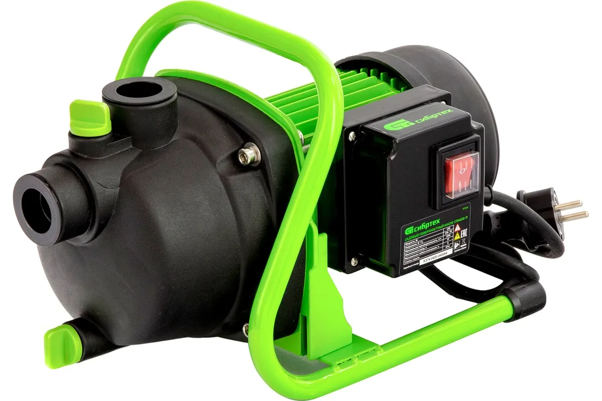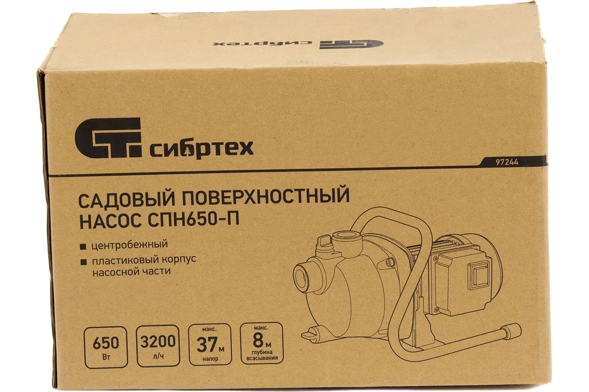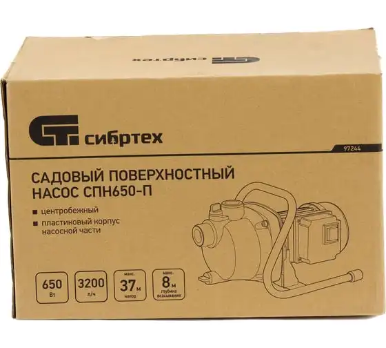 Садовый поверхностный насос СИБРТЕХ СПН650-П 97244 используется для орошения дачных участков. Забор воды возможен из колодцев, водоемов и резервуаров. Корпус из пластика. Малый вес конструкции - повышенная мобильность. Двигатель мощностью 650 Вт способствует подъему воды с глубины 8 метров.