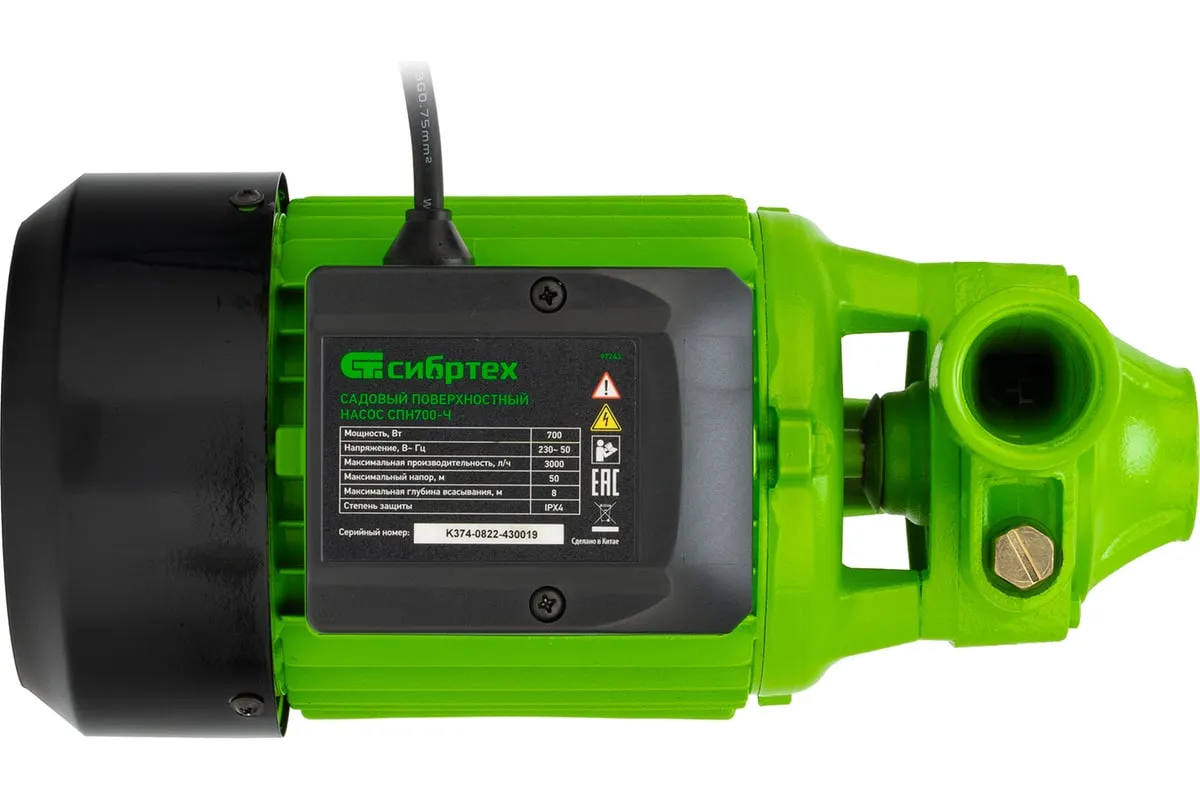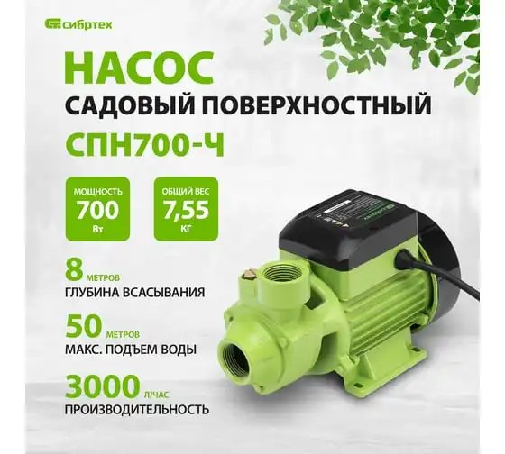 Садовый поверхностный насос СИБРТЕХ СПН700-Ч 97243 предназначен для полива садов, огородов, приусадебных участков. Имеет компактные размеры, поэтомуне займет много места для хранения. Корпус изготовлен из чугуна,не подвержен коррозии.