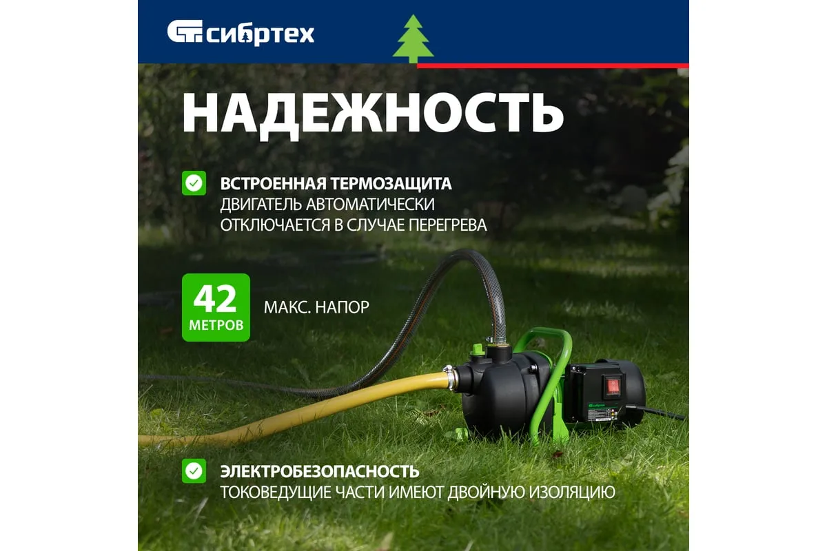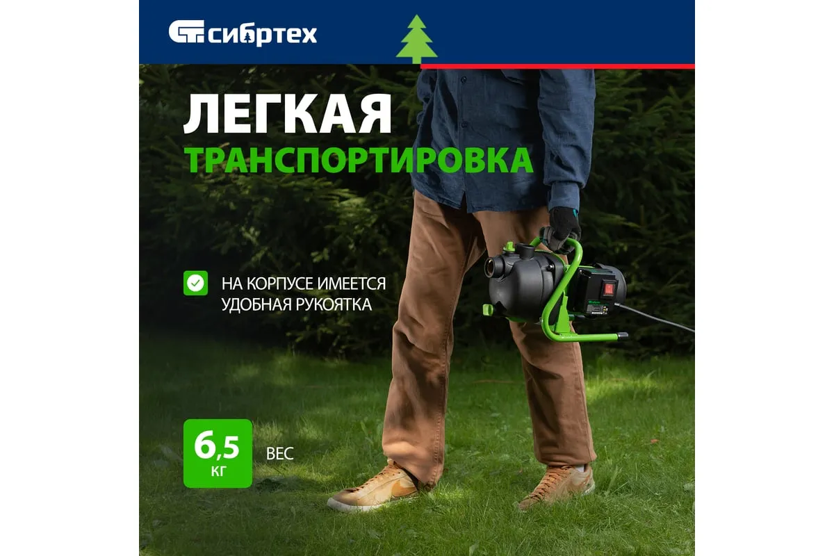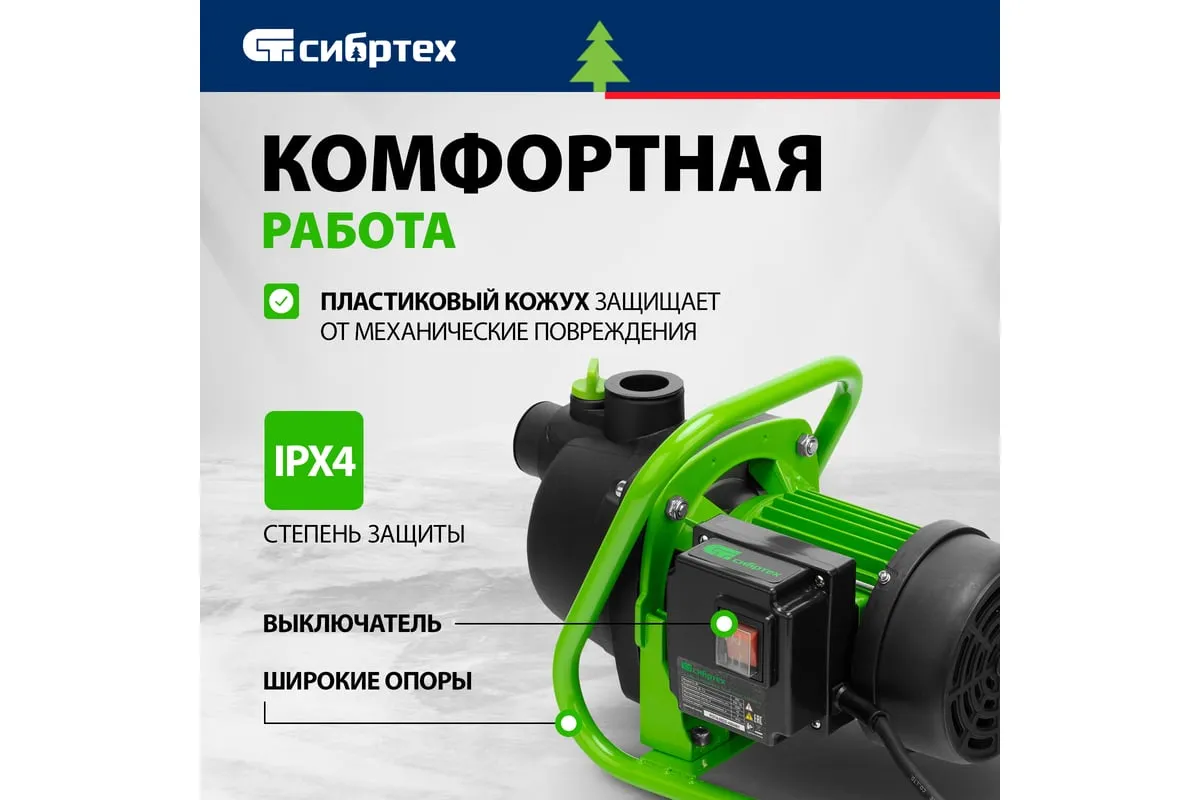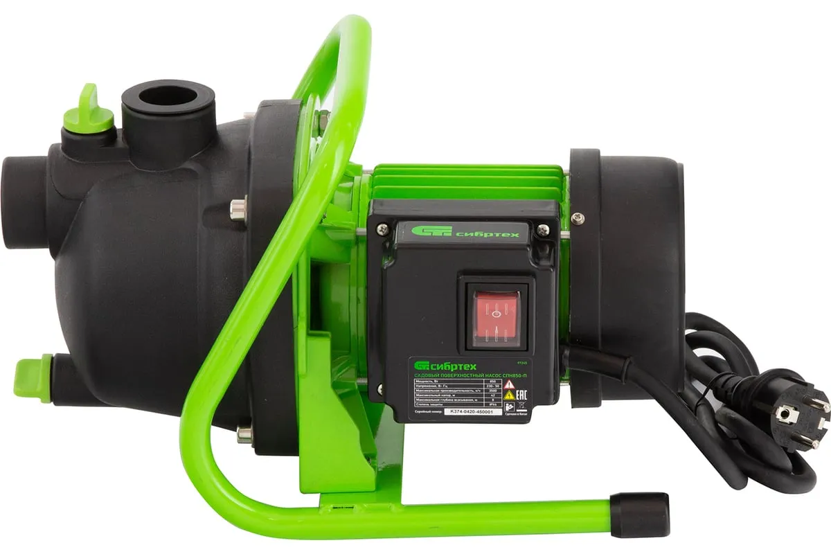 Садовый поверхностный насос СИБРТЕХ СПН850-П 97245 применяется для водоснабжения жилых помещений и полива различных территорий. Забор воды возможен из колодцев, водоемов и резервуаров. Корпус из пластика. Малый вес конструкции - повышенная мобильность. Двигатель мощностью 850 Вт способствует подъему воды с глубины 8 метров.