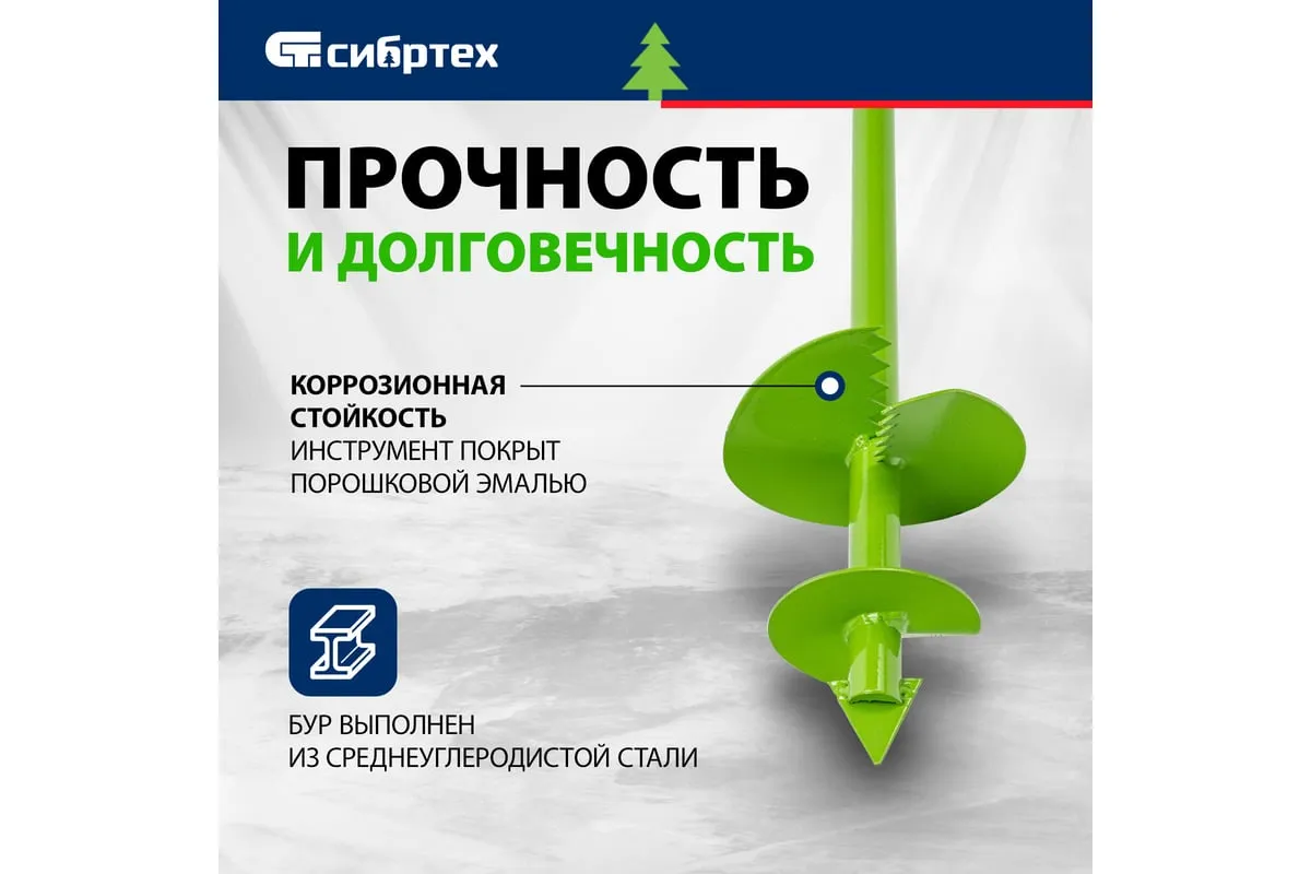 Садовый шнековый бур D 150мм СИБРТЕХ Россия 64398 подходит для проведения работ по обустройству территорий, посадке деревьев и кустарников и мн. др. Т-образная рукоятка оснащена специальными накладками. Рабочий наконечник выполнен в виде шнека для наилучшего бурения земли.