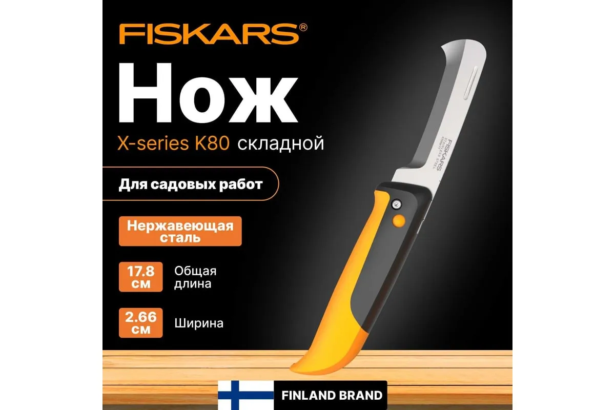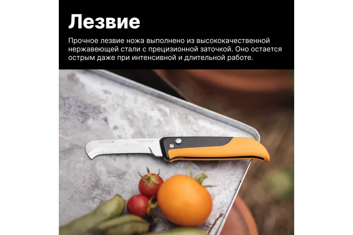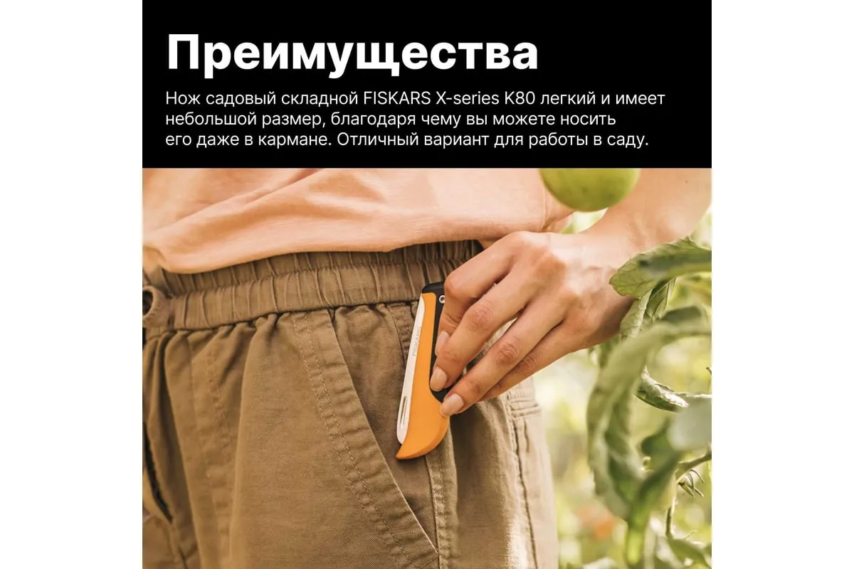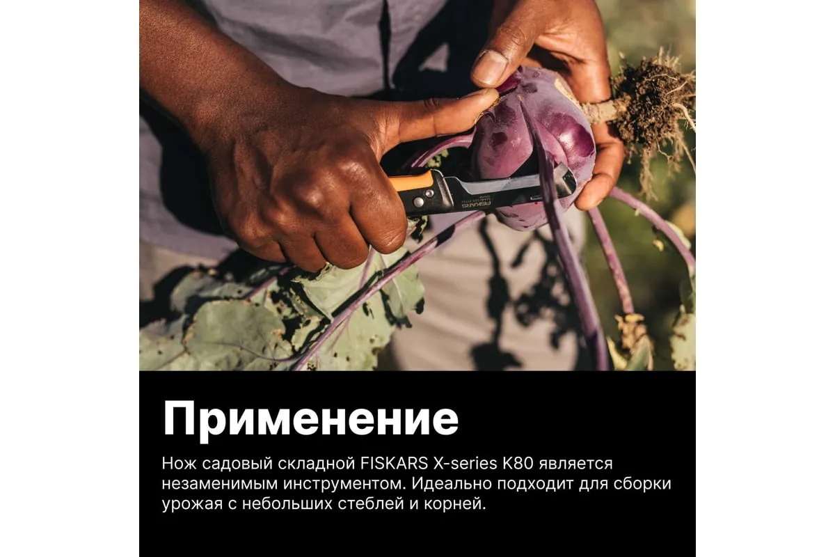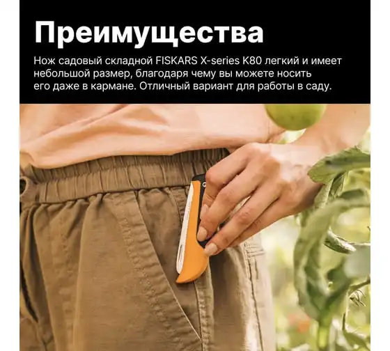 Садовый складной нож Fiskars K80 X-series 1062819 - отличное решение для чистых и точных срезов на небольших стеблях и корнях.