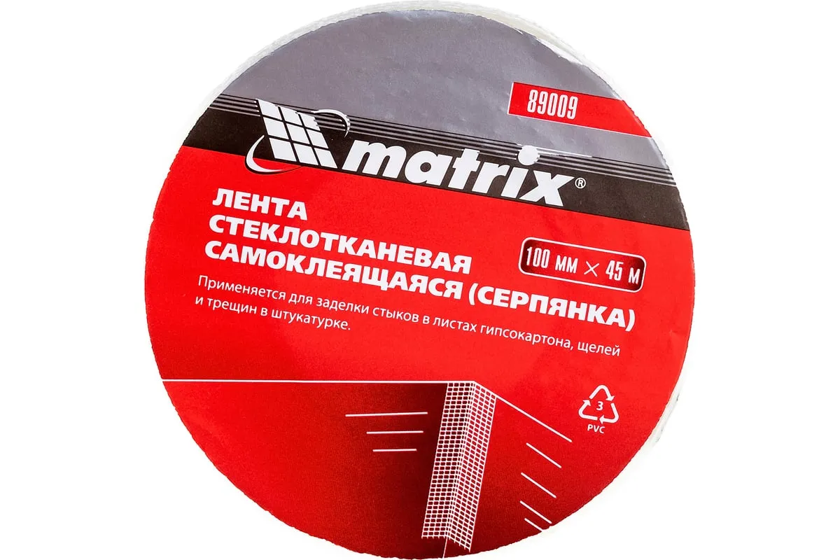 Самоклеящаяся серпянка Matrix 89009 шириной 100 мм и длиной 45 м предназначена для армирования щелей, трещин и стыков. Применяется для оштукатуривания стен, в частности, при монтаже гипсокартонных листов. Также подходит для ДВП, ДСП, металла и других материалов. Повышает прочностные характеристики поверхностей. Серпянка изготовлена методом перевивочного плетения, что придает ей прочность. Благодаря сетчатой структуре под ней не образуются воздушные пузыри. Для ее использования не требуются специальные инструменты — она легко режется ножницами. Лента-серпянка используется во время отделочных работ.