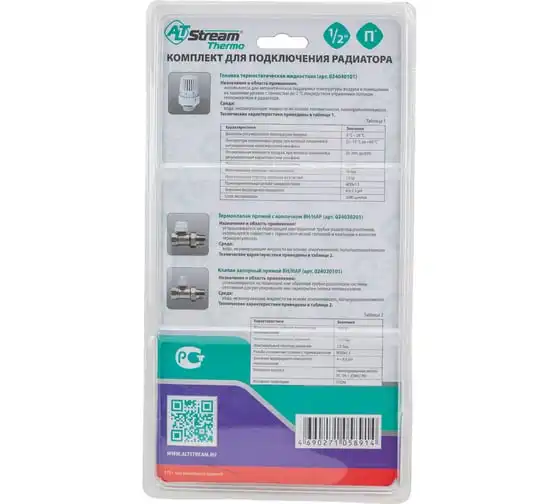 Термостатический комплект для радиаторов Altstream №1 1/2" прямой (термоклапан, клапан запорный, термоголовка) 024050101