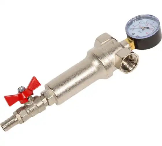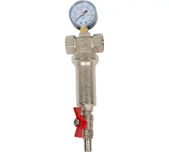 Промывной фильтр механической очистки воды с манометром Altstream В-В 1/2" 100 мкм 014110201