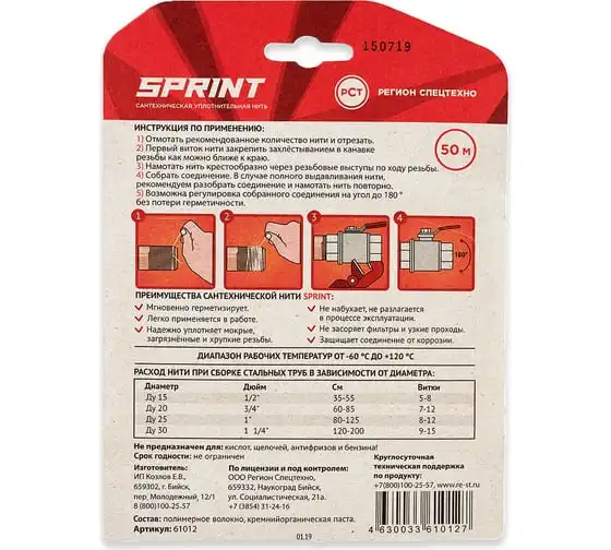 Уплотнительная нить Sprint бокс, м-50, катушка 04061