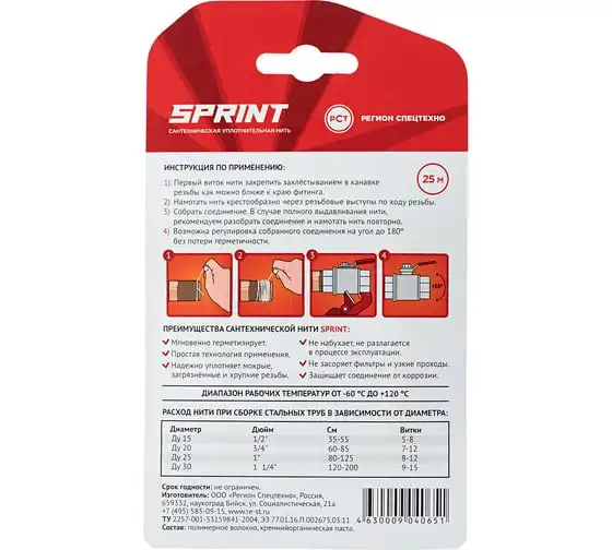 Уплотнительная нить Sprint бокс, м-25, блистер 04065