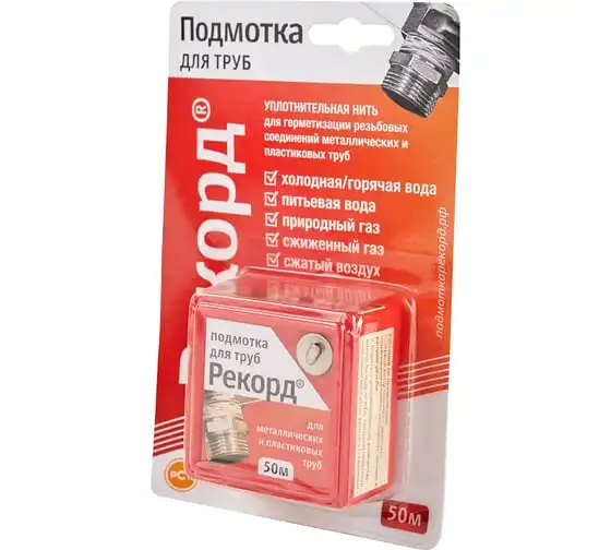 Подмотка для труб РЕКОРД 50 м, блистер 04002