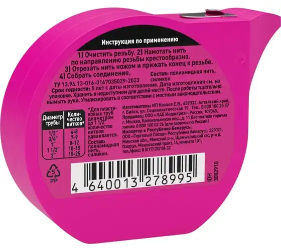 Нить для герметизации резьбовых соединений Тангит Уни-Лок, 50 м в шоу-боксе 2169519 3002910