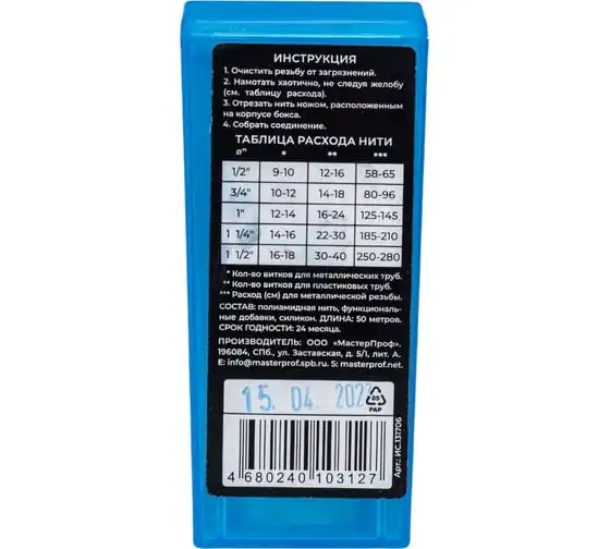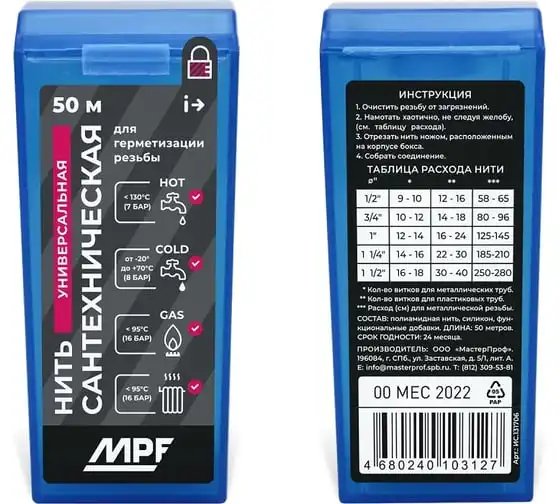 Нить сантехническая уплотнительная для резьбовых соединений 50м MPF ИС.131706