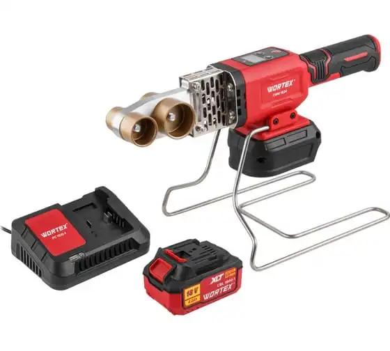 Аккумуляторный сварочный аппарат для полимерных труб WORTEX CWM 1834 ALL1 XLT SOLO + 3 насадки 1304746