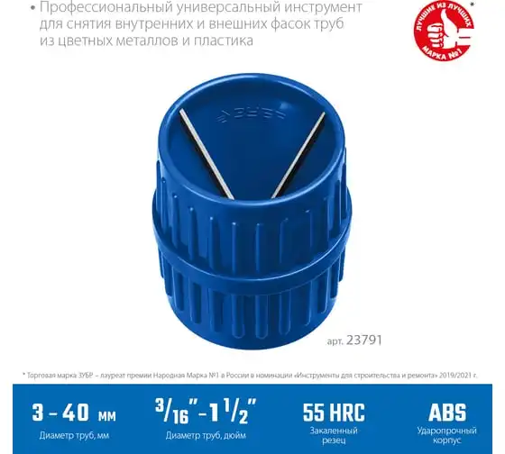 Зенковка - фаскосниматель для зачистки и снятия внутренней и внешней фасок ЗУБР (3-40 мм) 23791
