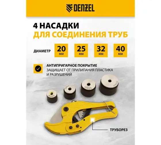 Аппарат для сварки пластиковых труб Denzel DWP-750 750Вт, 260-300 град., компл насадок, 20 - 40 мм 94203