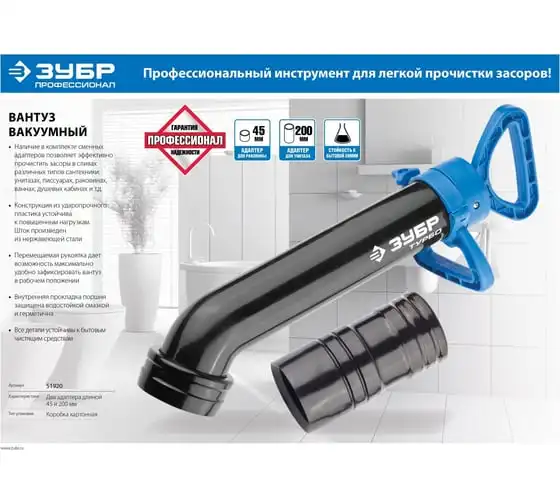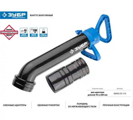 Вантуз Зубр ЭКСПЕРТ вакуумный ТУРБО, с двумя адаптерами 51920
