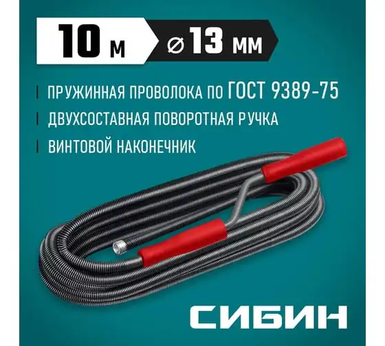 Сантехнический трос СИБИН 10 м, d 13 мм 51913-10