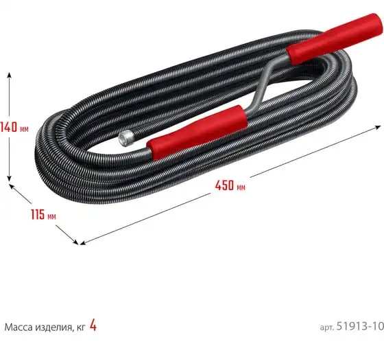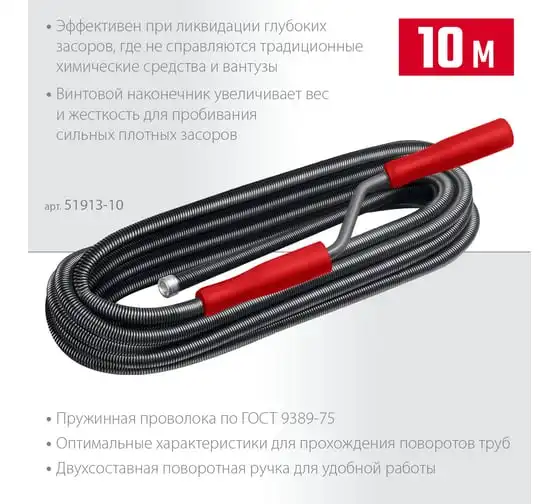 Сантехнический трос Зубр МАСТЕР 10 мм, 10 м 51902-10