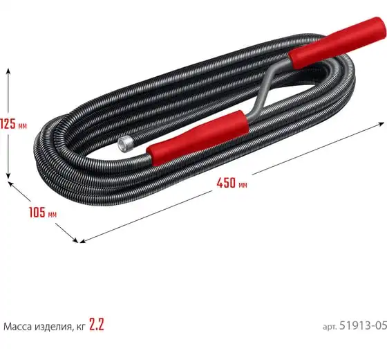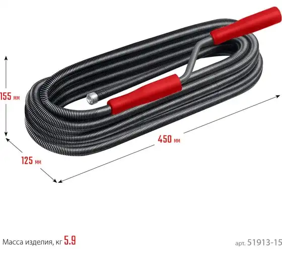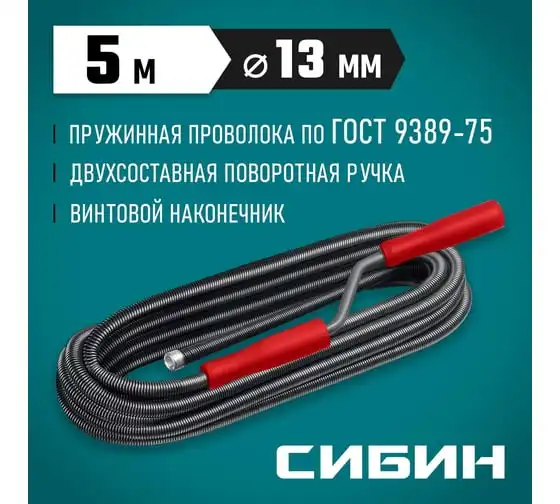 Сантехнический трос СИБИН 5 м, d 13 мм 51913-05
