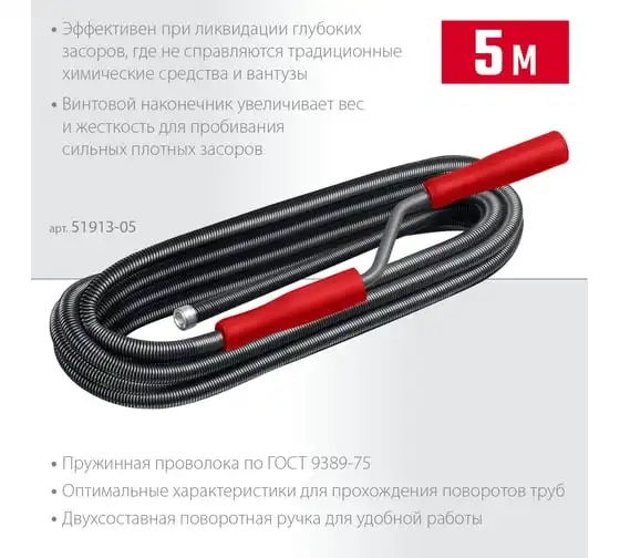 Сантехнический трос 5м, 9мм СИБИН 51909-050