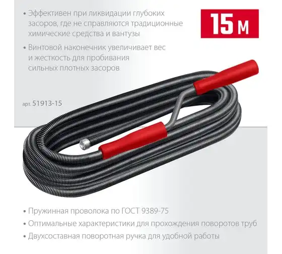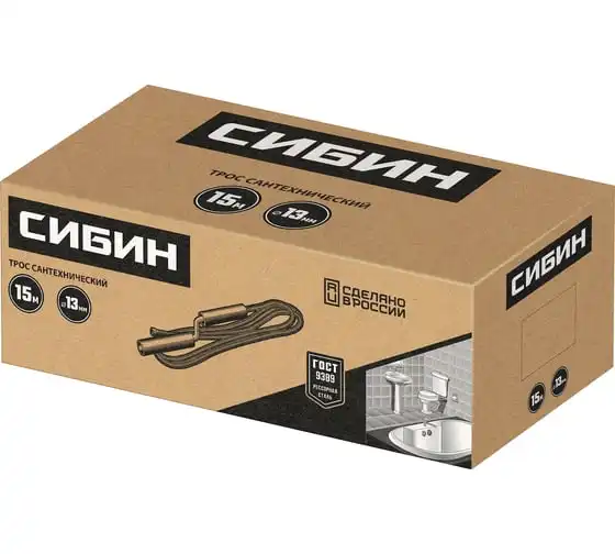 Сантехнический трос СИБИН 15 м, d 13 мм 51913-15