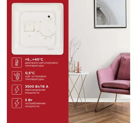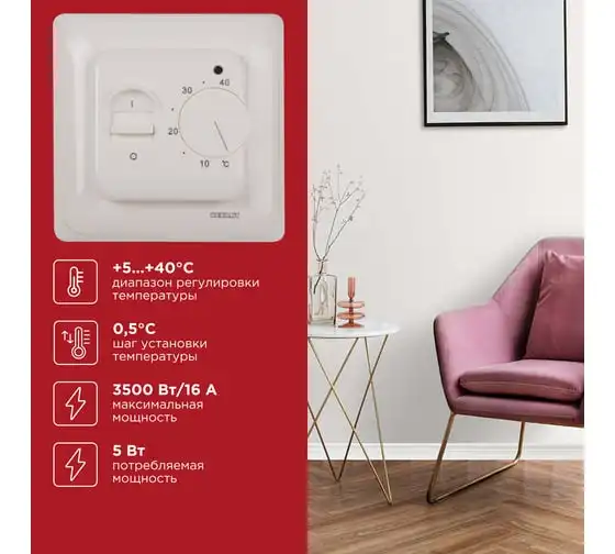Механический терморегулятор с датчиком температуры пола REXANT 3600Вт 51-0531