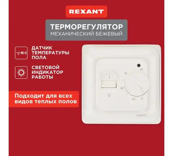 Механический терморегулятор с датчиком температуры пола REXANT R70XT, 3500 Вт, бежевый 51-0581