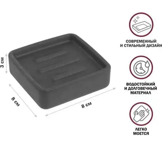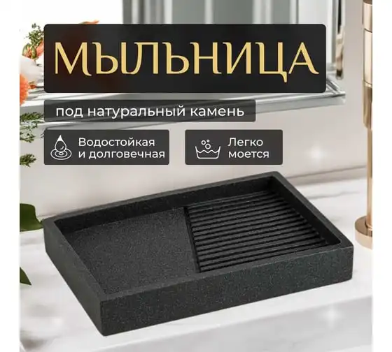Мыльница PERFECTO LINEA STONEWAVE, черная, ЦЗ-4586637312