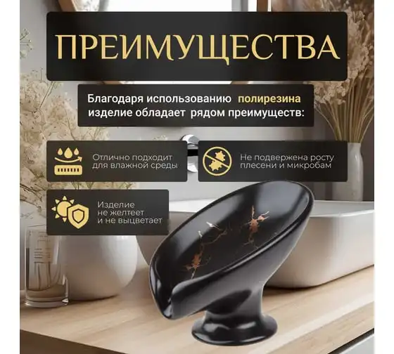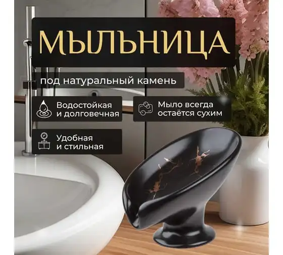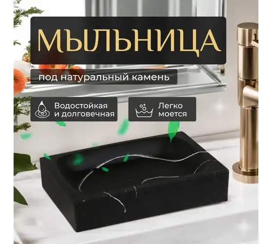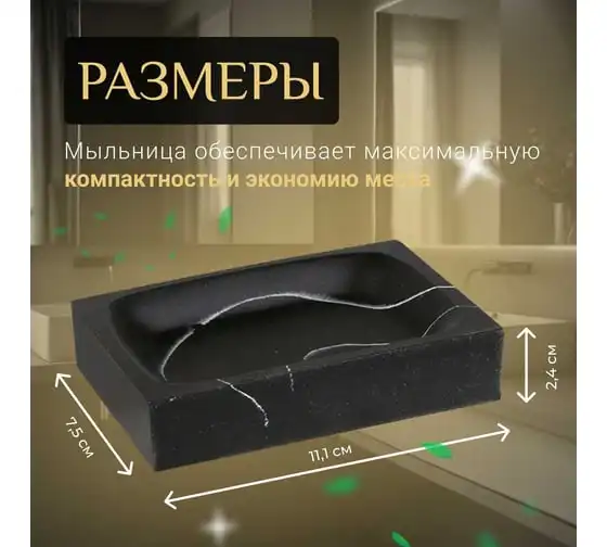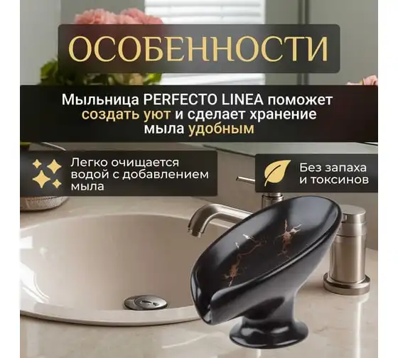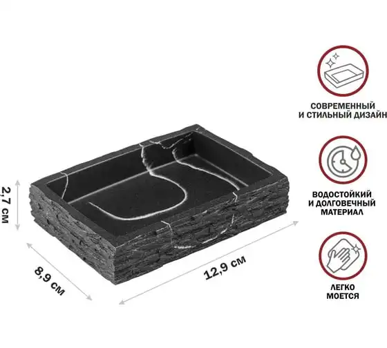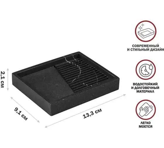 Мыльница PERFECTO LINEA ELEMENT MARBLE, черная, ЦЗ-0019861824