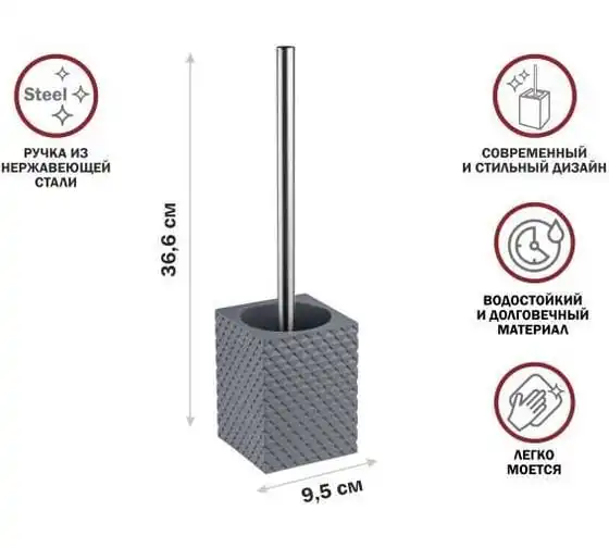 Ершик с подставкой PERFECTO LINEA STONE ESSENCE серый 35-690104