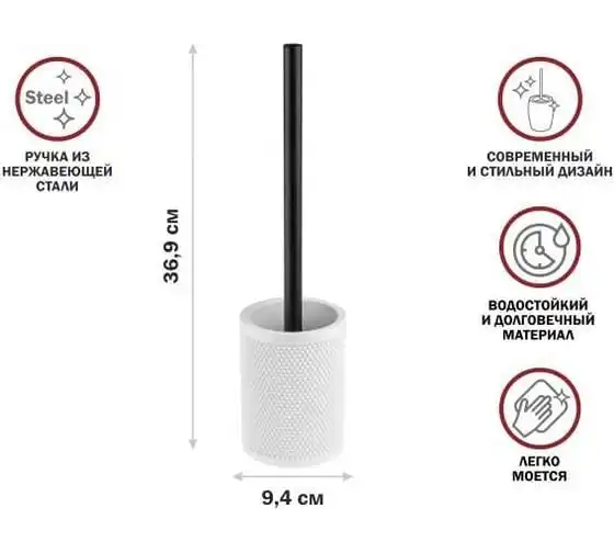 Ершик с подставкой PERFECTO LINEA STONEWAVE, белый, ЦЗ-0196057439