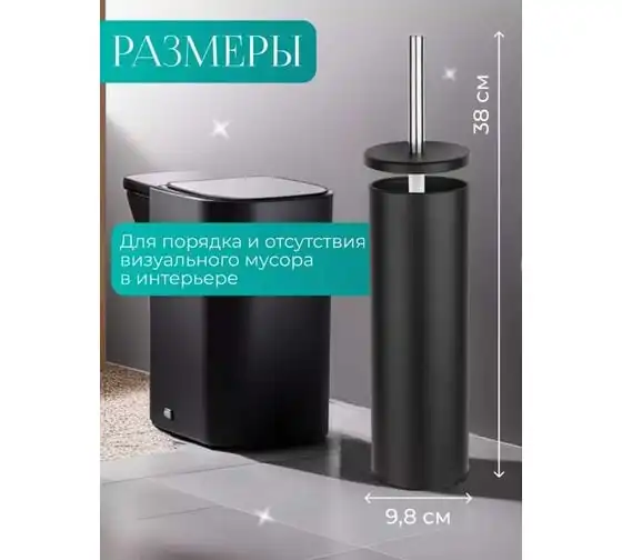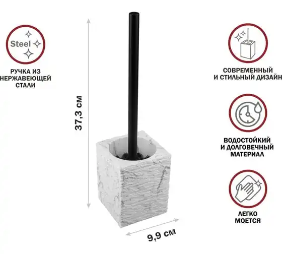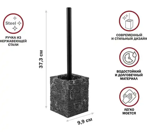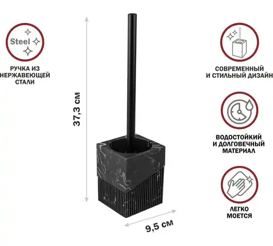 Ершик с подставкой PERFECTO LINEA ELEMENT MARBLE, черный, ЦЗ-0776821848
