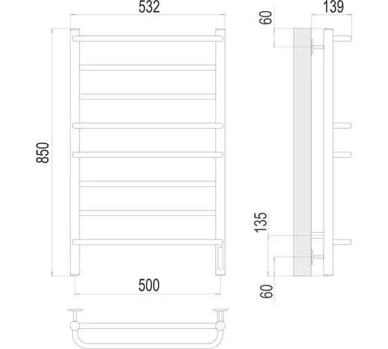Полотенцесушитель Terminus Виктория П8 500x800 4670078530134