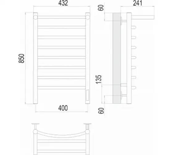Полотенцесушитель Terminus Классик с полкой quick touch П8 400x850 4670078531407