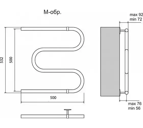 Водяной полотенцесушитель Terminus М-образный 1" 500х500 4620768881145