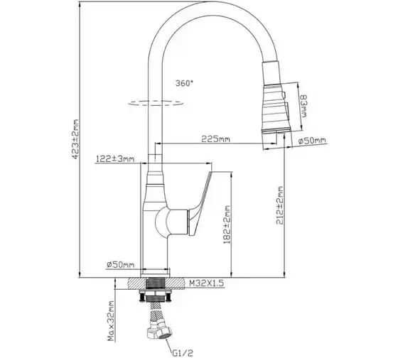 Смеситель для кухни ECONOCE вентильный (тип I), серия 500 EC0502