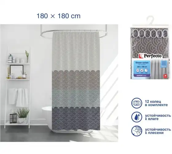 Шторка для ванной PERFECTO LINEA Harmony (12 колец в комплекте), 180x180 см, волны, 36-118118