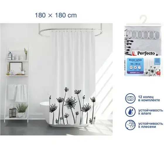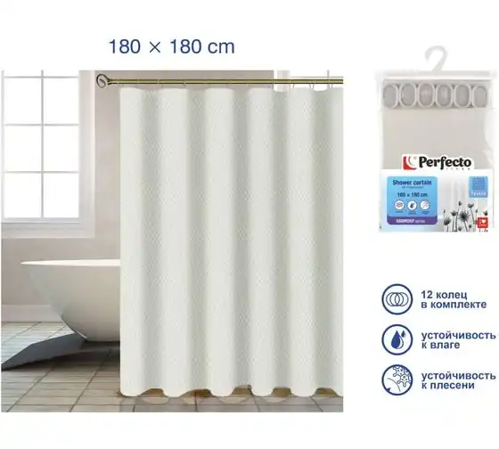 Шторка для ванной PERFECTO LINEA (12 колец в комплекте), 180x180 см, Harmony, жемчужно-белый, 36-118116