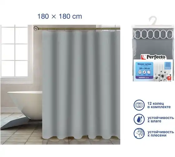 Шторка для ванной PERFECTO LINEA Harmony (12 колец в комплекте), 180x180 см, жемчужно-серый, 36-118119