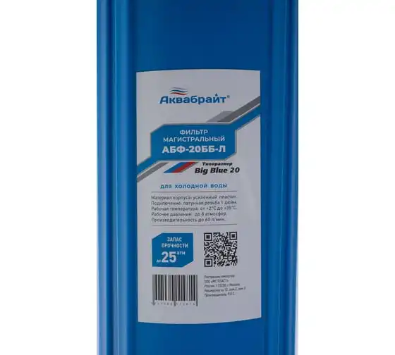 Магистральный фильтр 10BB резьба 1" Аквабрайт АБФ-10ББ-Л ключ и кронштейн в комплекте 33672