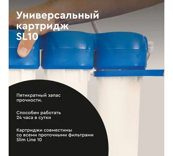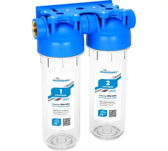 Магистральный фильтр 10SL резьба 1/2" двухступенчатый Аквабрайт АБФ-2 1/2 в комплекте кронштейн и ключ 33683