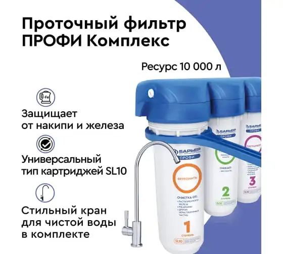 Фильтр под мойку БАРЬЕР ПРОФИ Комплекс, защищает от накипи и железа, Н142Р00
