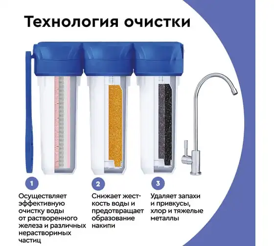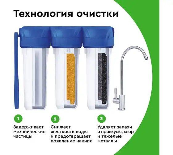 железа, ржавчины, песка, твердых частиц, хлора, солей жесткости