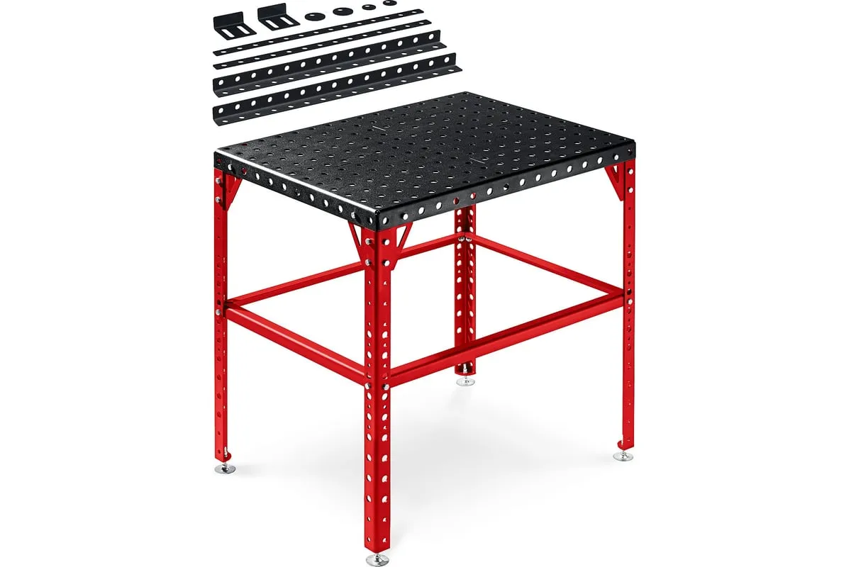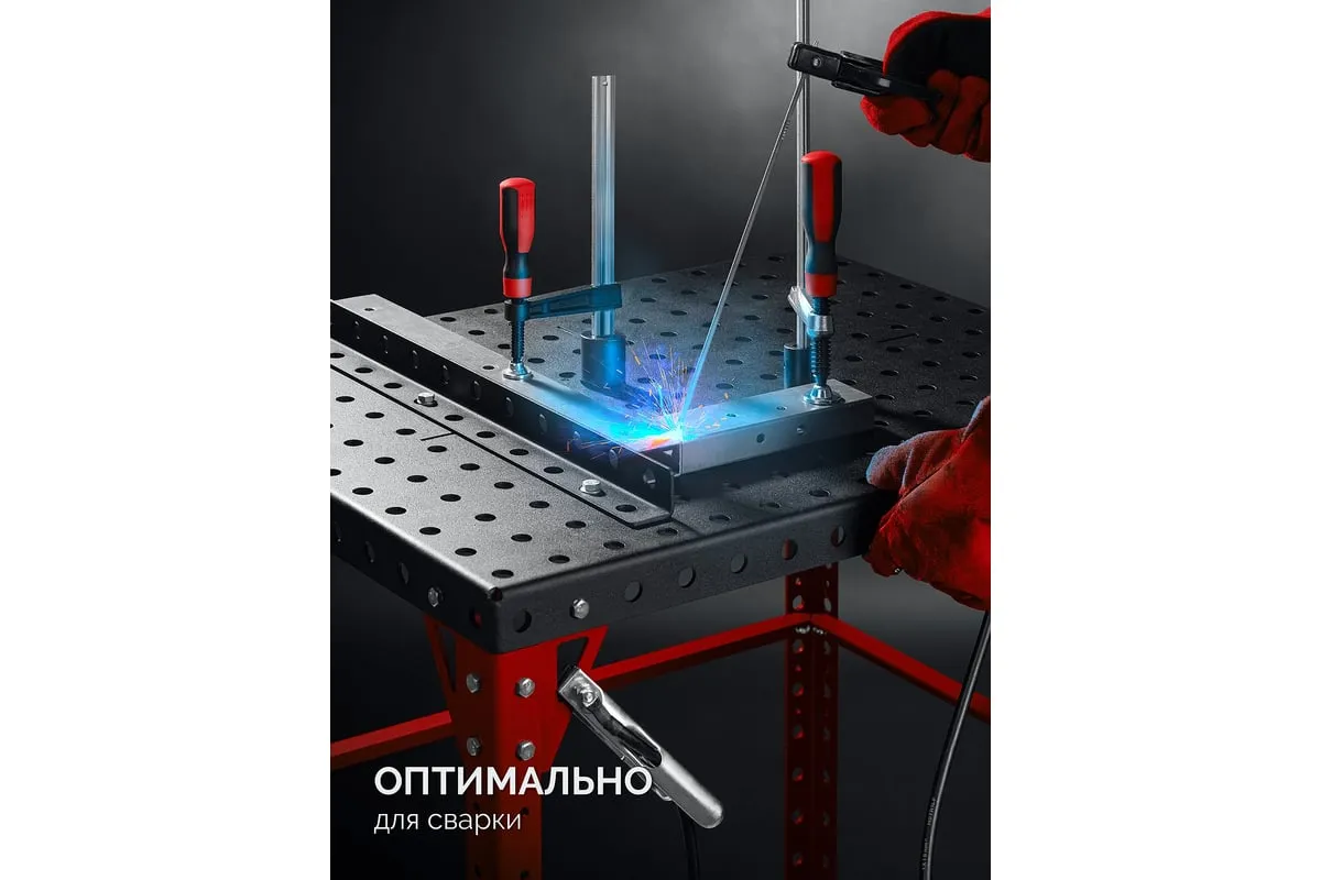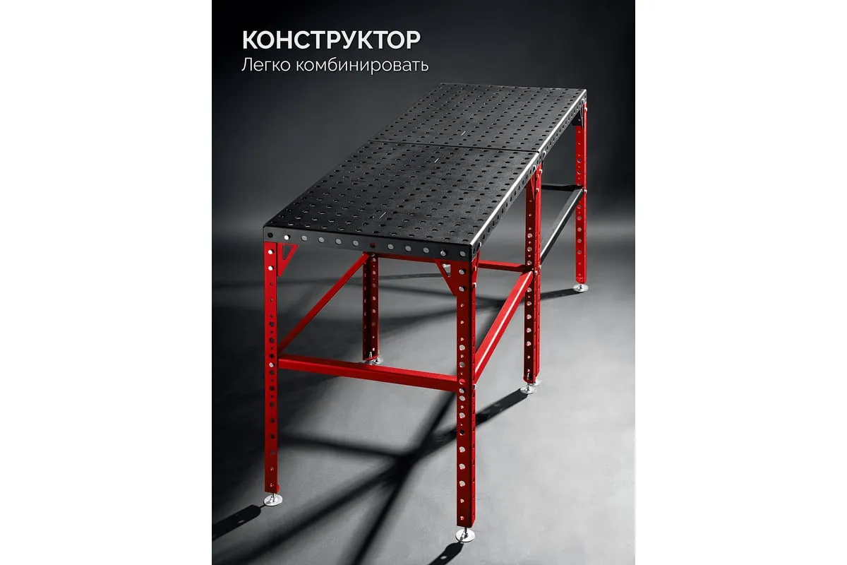 Компактный сборочно-сварочный стол из стали 4мм для профессионального использования. Применяется для проведения сварочных и сборочных работ, с возможностью фиксации деталей, позволяет производить сборку и сварку конструкций любой сложной конфигурации. Стол можно использовать как слесарный верстак, сборочно-сварочный стол, мобильный верстак или преобразовать его в станок.