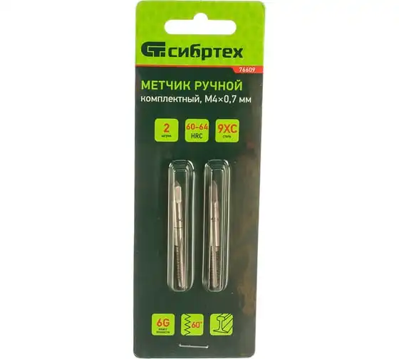Комплект ручных метчиков М4 х 0,7 мм СИБРТЕХ 76609