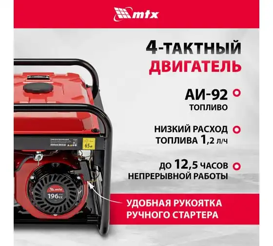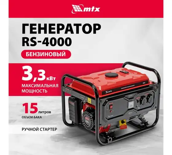 Генератор бензиновый MTX RS-4000, 3,3 кВт, 230В, ручной стартер 946115
