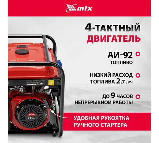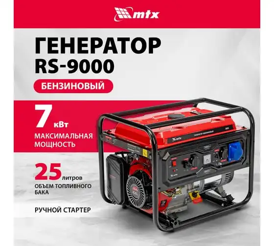 Генератор бензиновый MTX RS-9000, 7 кВт, 230В, ручной стартер 946155
