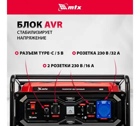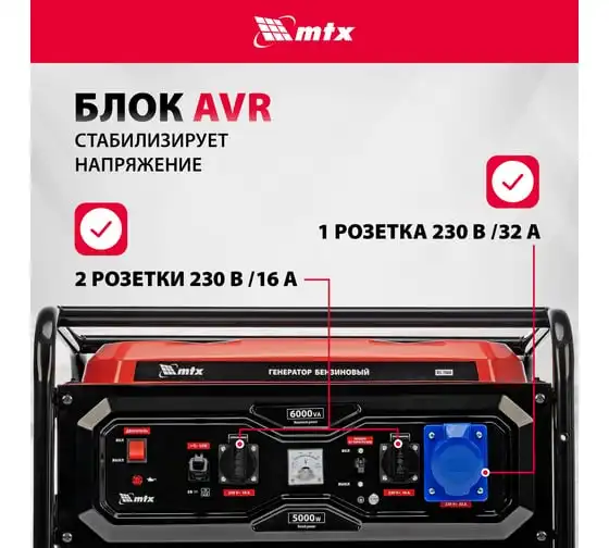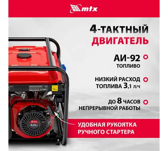 Генератор бензиновый MTX RS-7000, 6 кВт, 230В, ручной стартер 946135