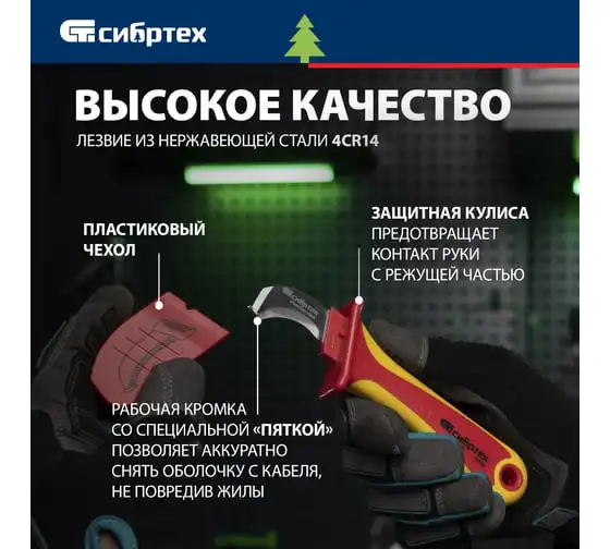 Диэлектрический нож для снятия оплетки электрокабелей СИБРТЕХ 78808