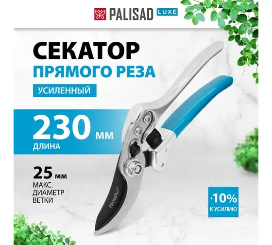 Секатор PALISAD прямого реза, 230 мм, усиленный, нижняя рукоятка в ПВХ-оболочке, LUXE 60471