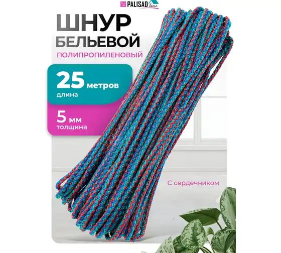 Бельевой шнур PALISAD Home полипропиленовый с сердечником, 5 мм L 25 м, цветной 937145