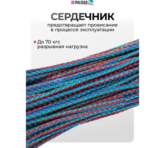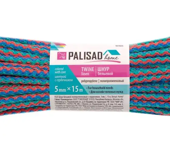 Бельевой шнур PALISAD Home полипропиленовый с сердечником, 5 мм, L 15 м, цветной 937095
